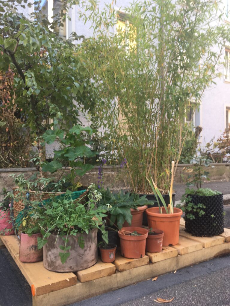 Wie wird unser Superblock grüner? Dieses Thema beschäftigt viele und der Perimeter wird regelmässig mit privat bereitgestelltem Grün angereichert. Dies wird ergänzt durch “offiziell” geliefertes Grün von seiten des Projekts. Wir diskutieren regelmässig mit der Projektleitung des PD darüber, in welcher Form dies passieren soll, spiegeln die Anfragen zur Diskussion unter den Anwohner*innen in den Chat.