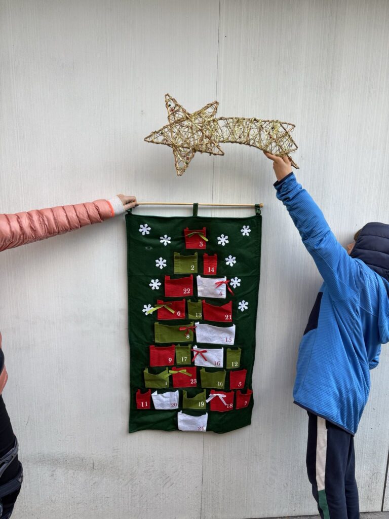 Liebe alle! Gestern haben I. und ich in einer waghhalsigen Aktion die ersten Wimpel aufgehängt.