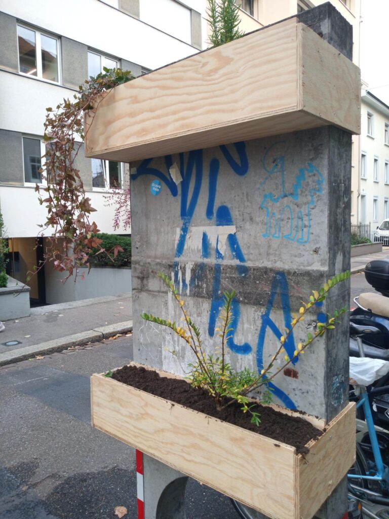 ich habe letzten Donnerstag mit dem PD telefoniert. Zwei Sachen:a) Sie beabsichtigen 10 sog. Schattenboxen Pflanzen aufzustellen. “Schattenboxen” sind die, welche im Rahmen eines Projekts von der ZHAW Zürich (Stefan Brenneisen) bereitgestellt werden. Man kann diese Schattenboxen z.B. bereits in der Mühlhauserstrasse vor einigen Läden oder auch anderen Orten der Stadt sehen.