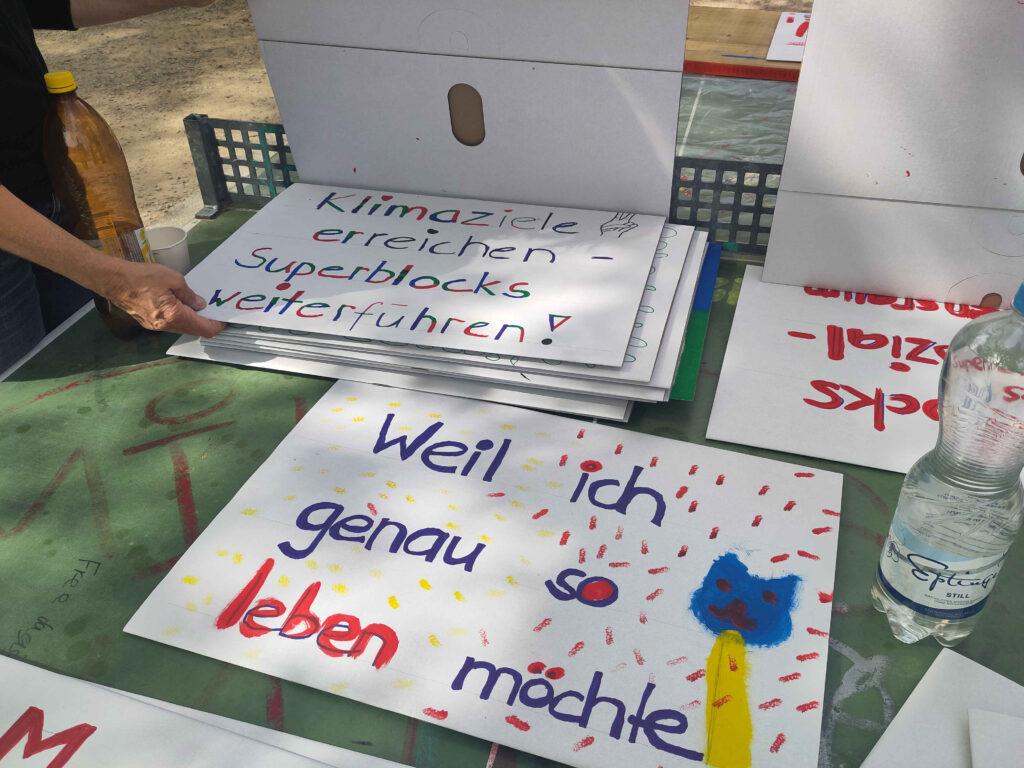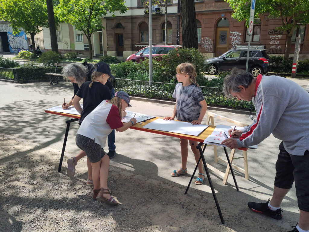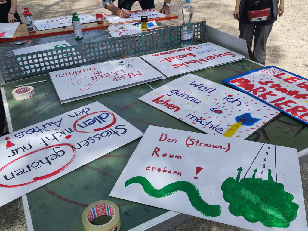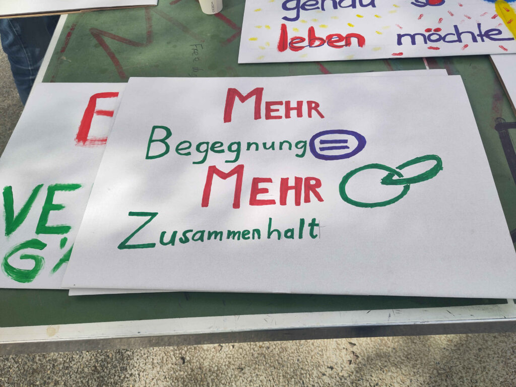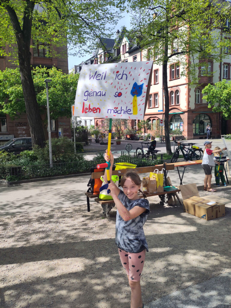 Heute Nachmittag haben wir uns bei schönem Frühlingswetter auf dem Matthäusmarkt getroffen, um unseren Spaziergang zur Petitionsübergabe am 17. April weiter vorzubereiten. Hauptthema war das Malen von Schildern und Plakaten, mit denen wir unsere Forderungen sichtbar machen wollen. Schnell schlossen sich uns Kinder an und halfen mit grosser Energie und Begeisterung, die Schilder herzustellen.