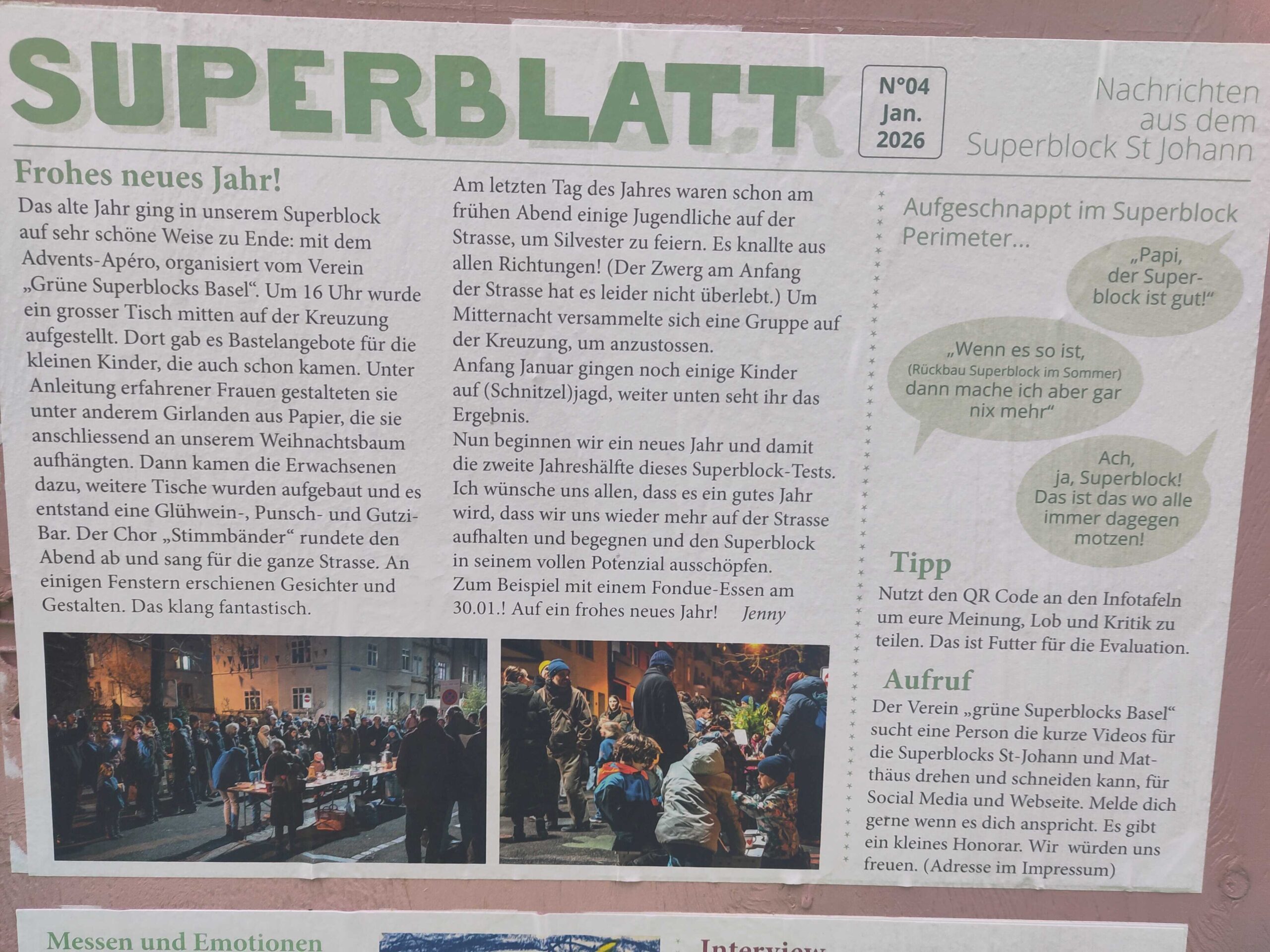 Zwei Mitglieder unseres Vereins Grüne Superblocks Basel begrüssten uns zum Neuen Jahr mit folgendem Mail: